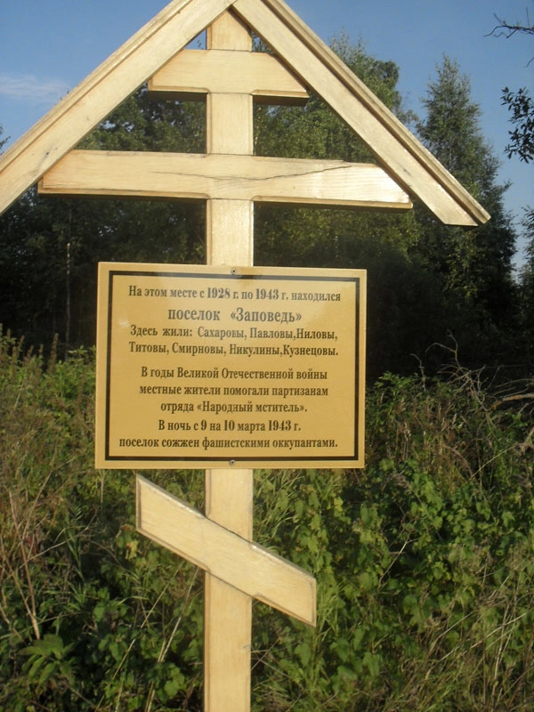 В свое время представители большой семьи Смирновых на дереве, когда-то посаженным в 1948 году её младшим поколением, прибили табличку с указанием того, что был такой поселок Заповедь. Дальше – больше. Установили православный крест. А в сентябре нынешнего года Александр Николаевич Орлов, профессионально занимающийся у нас в районе оказанием ритуальных услуг населению, благоустроил место, где установлен крест, а на самом кресте появилась табличка с указанием фамилий семей, живших в деревне.