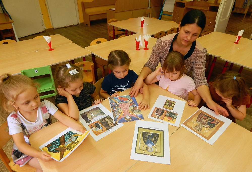 В дошкольных учреждениях в рамках Рождественских образовательных чтений проводятся познавательные беседы с детьми с использованием демонстрационных материалов, мультимедиа по ознакомлению с защитниками земли русской, причисленными к лику святых.