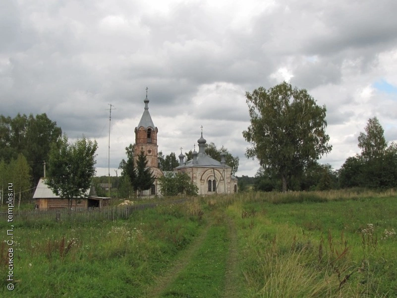 Деревянный храм в честь Казанской иконы Божией Матери построили на берегу речки Слуя в 1785 году помещиком Василием Бровициным. Вместо него в 1913 году поставили каменный храм в честь Казанской иконы Божией Матери с трапезной и трехъярусной колокольней.