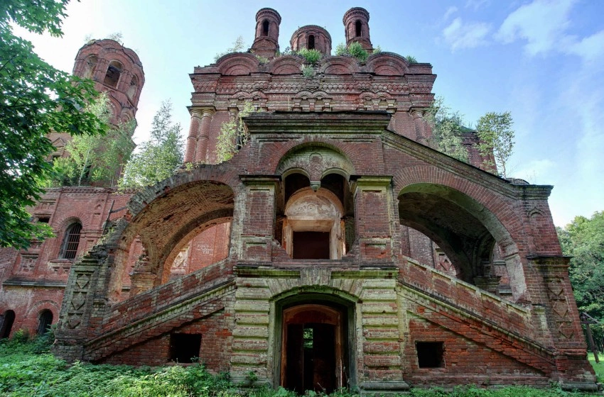 Каменный храм в честь Тихвинской иконы Божией Матери построен на средства графини А.Г. Шереметьевой в 1867-1871 годах, по проекту известного архитектора Николая Леонтьевича Бенуа.