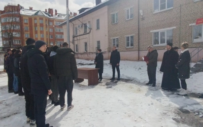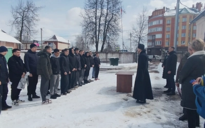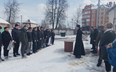 Отец Владимир обратился к будущим воинам с пастырским словом и благословил их на прохождение военной службы.