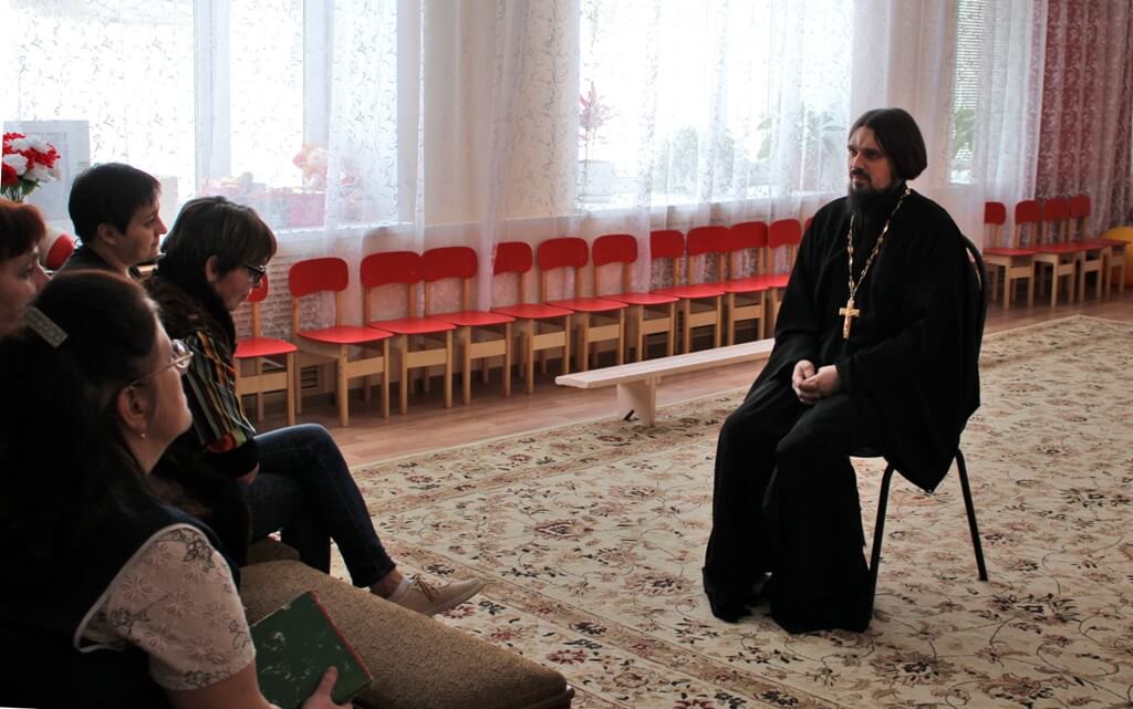 9 февраля 2018 года настоятель Свято-Троицкого собора г. Вязьмы иерей Александр Курмелев провел беседу с воспитателями детского сада № 3. Священник рассказал присутствующим о Прощеном воскресении, о подготовке к Великому посту, о покаянии. Также были подняты и другие темы духовно-нравственной направленности.