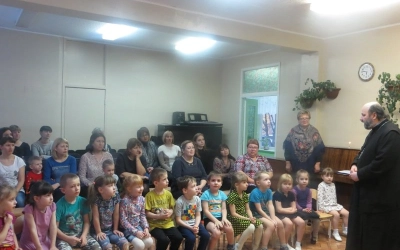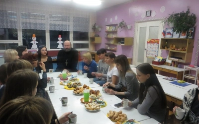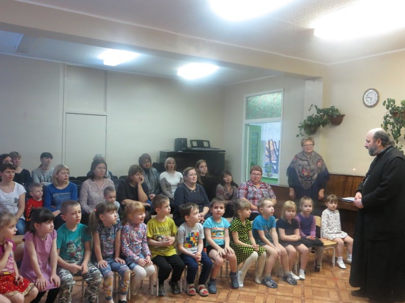 15 февраля 2018 года состоялась «Встреча» детей старшей группы «Светлячки» с родителями и протоиереем Олегом Переверзевым, настоятелем Введенского храма г. Вязьмы. Ведущая, Анищенко И.В., руководитель кружка «Свечечка», предложила вспомнить о православных праздниках: Рождество Христово, Святки, Крещении. Дети и родители узнали о празднике Сретения, исполнили православные песни «Овечки, коровки», «Непослушная рыбка». Никого не оставил равнодушным танец со свечами «Звездочки». В заключении священник ответил на вопросы присутствующих, рассказал о приближающемся Великом Посте. Дети подарили гостям сделанных своими руками голубей.