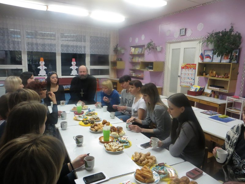 А потом состоялось чаепитие, где в теплой душевной обстановке беседа с батюшкой продолжилась.