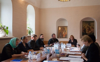 Заседание возглавили председатель Отдела религиозного образования и катехизации Московской областной епархии епископ Зарайский Константин и советник Полномочного представителя Президента Российской Федерации в Центральном федеральном округе на общественных началах Марина Белогубова.