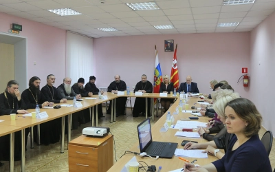 18 октября 2019 года в городе Вязьме состоялось заседания круглого стола в рамках Рождественских чтений муниципального этапа. В этом мероприятии приняли участие: секретарь епархиального управления Вяземской епархии, благочинный Вяземского округа протоиерей Валерий Калинин, заместитель Главы Администрации МО "Вяземский район" Вавилова С.Б., руководители профильных структур районной администрации, руководители епархиальных отделов, клирики Вяземского благочиния.