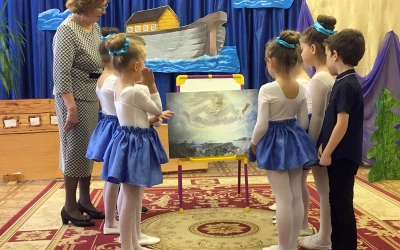 Педагоги подготовительной группы №2 делились опытом работы с коллегами из детских садов Вяземского района и родителями на интегрированном занятии «Ознакомление с событиями Ветхого Завета. Ноев ковчег».