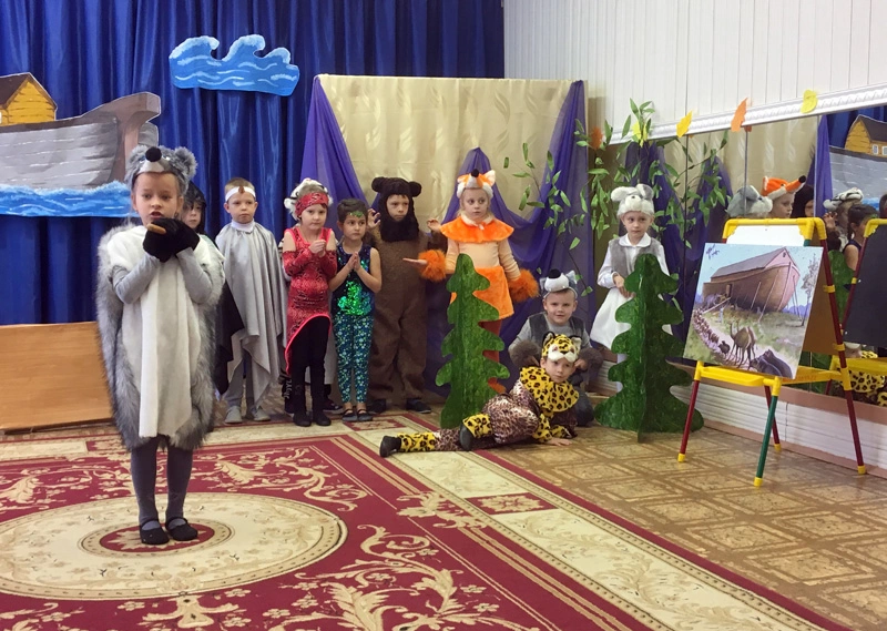В процессе подготовки к занятию и на занятии с помощью разных методов и приемов у детей формировались первоначальные представления о Боге как Творце мира. Систематизировались имеющиеся у детей представления о многообразии мира через умение рассматривать картины. Массовое вовлечение детей в инсценировку – оживление картины «Ноев ковчег» вызвало у дошкольников эмоциональную отзывчивость и сопереживание к персонажам Библейской истории. Обогащался словарь детей, диалоговая форма речи.