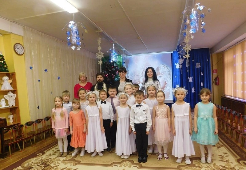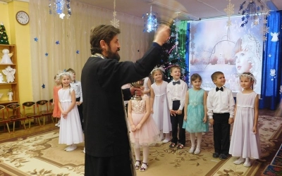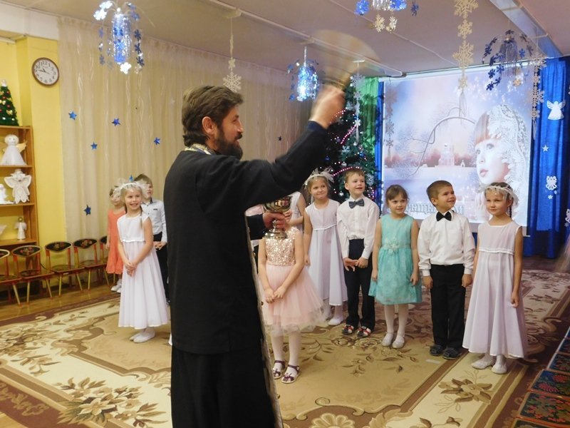 Протоиерей Георгий Биляк, присутствовавший на мероприятии, так же рассказал ребятам о празднике Крещения, а после занятия окропил их святой водой.