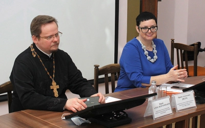 С приветственным словом к участникам форума обратились модераторы: Дидук Ирина Алексеевна, проректор по науке и проектированию образовательной деятельности ГАУ ДПО СОИРО, к.п.н. и иерей Александр Коржаков, руководитель Отдела Смоленской епархии по религиозному образованию и катехизации.