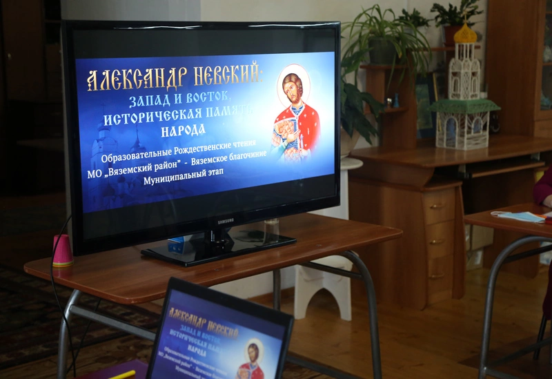 13 ноября 2020 года в здании воскресной школы при Введенской церкви г. Вязямы состоялось мероприятие в рамках Региональных Рождественских чтений "Александр Невский: Восток и Запад, историческая память народа" (Муниципальный этап). Участниками встречи стали благочинный Вяземского округа протоиерей Валерий Калинин, заместитель Главы Администрации МО "Вяземский район" Вавилова С.Б., начальник отдела социальной защиты населения в Вяземском районе Новикова Т. А., руководители профильных структур районной администрации, руководители епархиальных отделов, помощники благочинного.