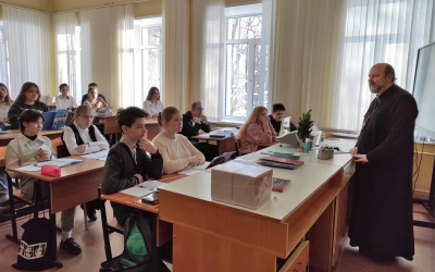 11 января руководитель епархиального ОРОиК протоиерей Олег Переверзев провел уроки по предмету "История Православной культуры Смоленской земли" в двух 8-х классах МБОУ СОШ №1 г. Вязьма. Встреча была организована по инициативе педагогов учреждения.