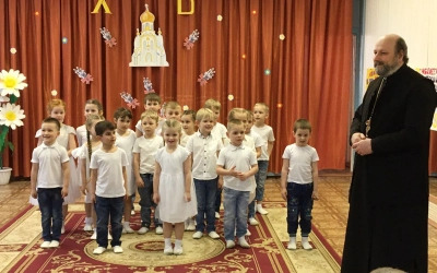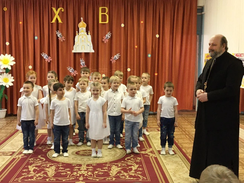 25 апреля настоятель Введенской церкви протоиерей Олег Переверзев принял участие в пасхальном концерте, которе подготовили педагоги и воспитанники детского сада №10 города Вязьмы.