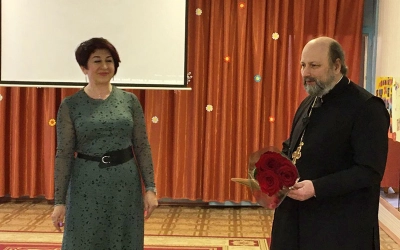 В свою очередь руководитель учреждения Премель Лариса Геннадьевна поздравила отца Олега с Пасхой и днем рождения. К поздравлениям присоеденились педагоги и дети.