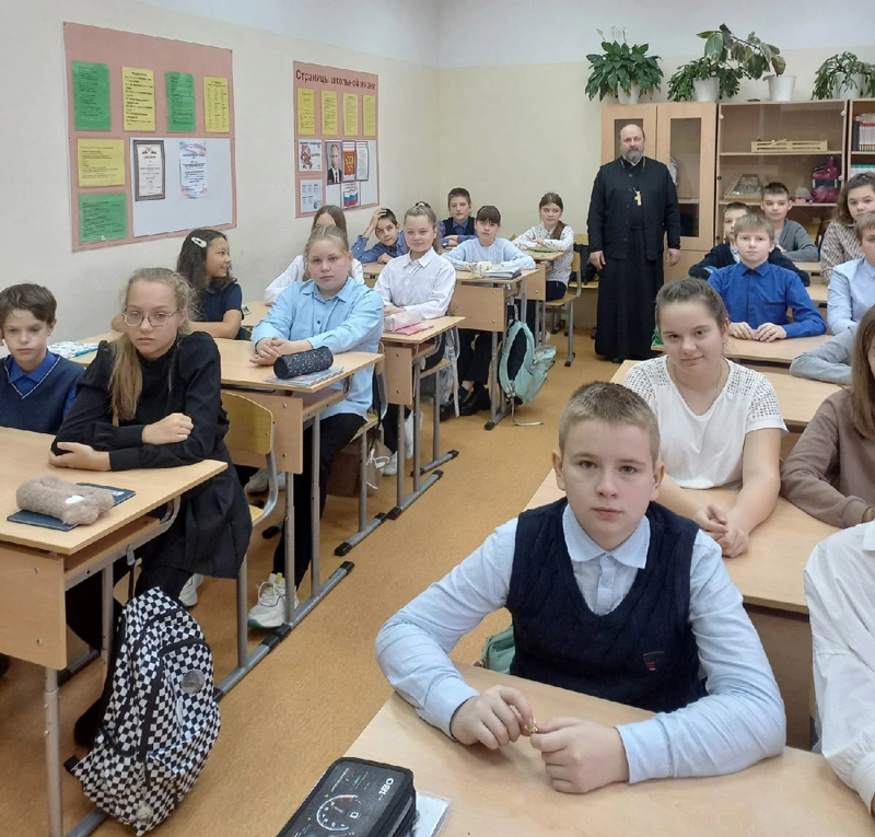 Тематика Рождественских чтений 2022-23 гг. предполагает диалог не только с педагогами, но и с подрастающим поколением. Так 28 октября 2022 года в МБУ СОШ №10 состоялась встреча настоятеля храма Введения Пресвятой Богородицы г. Вязьмы протоиерея Олега Переверзева и учащихся 6-х классов.