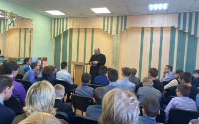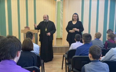 7 декабря 2022 года в СОГБОУ "Вяземская школа-интернат для обучающихся с ограниченными возможностями здоровья" в д. Черное в рамках Рождественских чтений Муниципального этапа состоялась встреча педагогов и учащихся с настоятелем храма Введения Пресвятой Богородицы г. Вязьмы протоиереем Олегом Переверзевым.