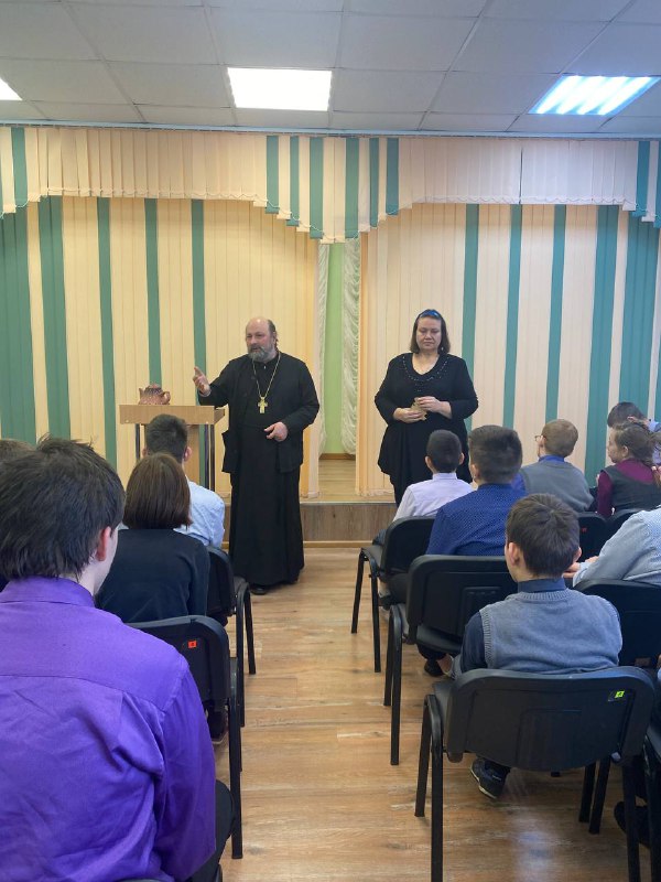 7 декабря 2022 года в СОГБОУ "Вяземская школа-интернат для обучающихся с ограниченными возможностями здоровья" в д. Черное в рамках Рождественских чтений Муниципального этапа состоялась встреча педагогов и учащихся с настоятелем храма Введения Пресвятой Богородицы г. Вязьмы протоиереем Олегом Переверзевым.