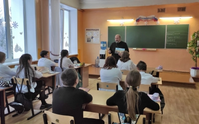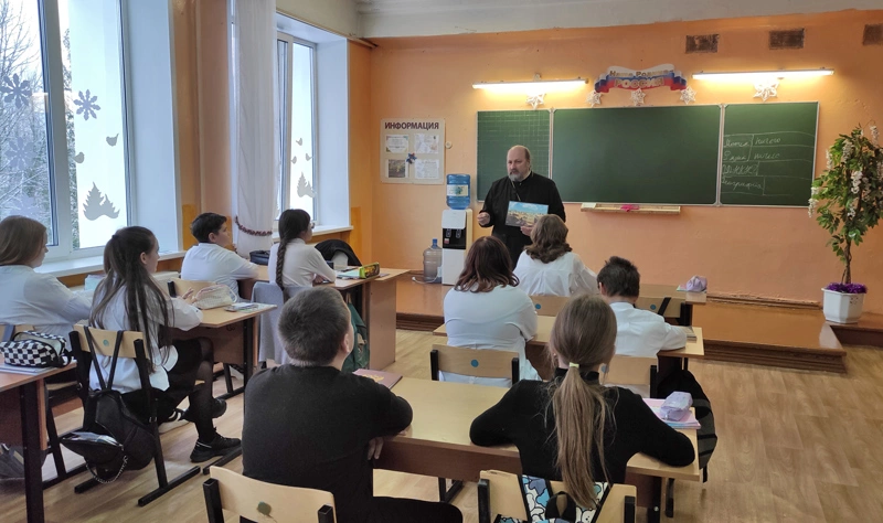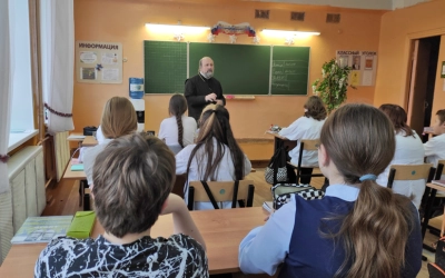27 декабря 2023 года секретарь Вяземского епархиального управления, натоятель Введенской церкви г. Вязьмы протоиерей Олег Переверзев провел урок по предмету "Основы духовно-нравственной культуры народов России" в 6 б классе МДОУ СОШ №8. Тема урока - "Рождество Христово. История, смысл, традиции".