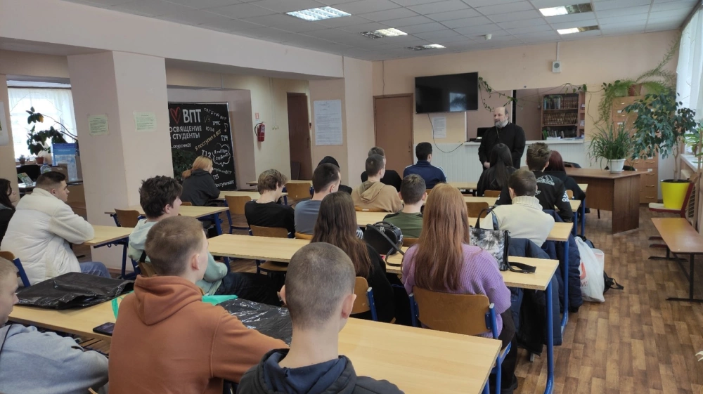 26 января 2024 года в Вяземском политехническом техникуме состоялась беседа студентов курса Т112 с секретарем Вяземского епархиального управления, настоятелем храма в честь Введения Пресвятой Богородицы протоиереем Олегом Переверзевым.