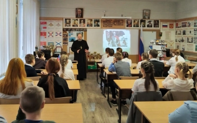 12 ноября 2024 в МБОУ СОШ №8 г. Вязьмы состоялась встреча настоятеля Введенской церкви протоиерея Олега Переверзева с учащимися 5-х, 7-х и 10-х классов. Мероприятие проходило в рамках Региональных Рождественских чтений муниципального этапа под темой "80-летие Великой Победы: связующая нить поколений".