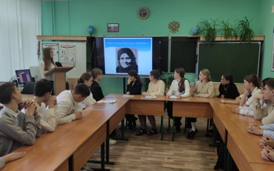 С докладом на тему: "Воевала без оружия в руках. Прасковья Захаровна Каретникова."- обучающаяся 8 Б класса Трофимова Ксения