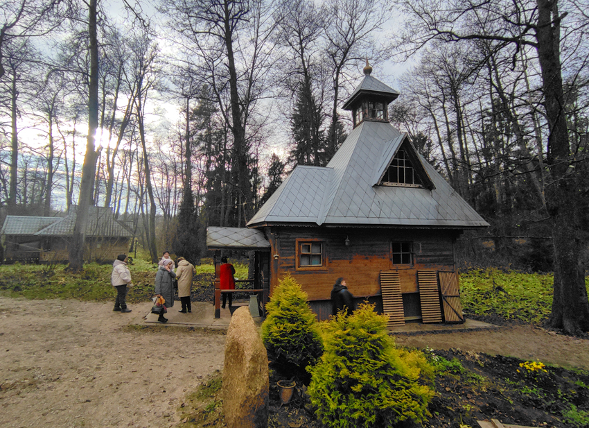 Последним местом посещения стал скит, созданный на месте молитвенных трудов преподобного Тихона Калужского, где он ископал колодец и водой из него исцелял болящих, во множестве приходящих к нему. Храм в честь иконы «Живоносный Источник» — главная скитская святыня. Рядом — источник и купальня, в которой, совершив погружение, паломники с благодарным и благодатным вдохновением отправились домой.