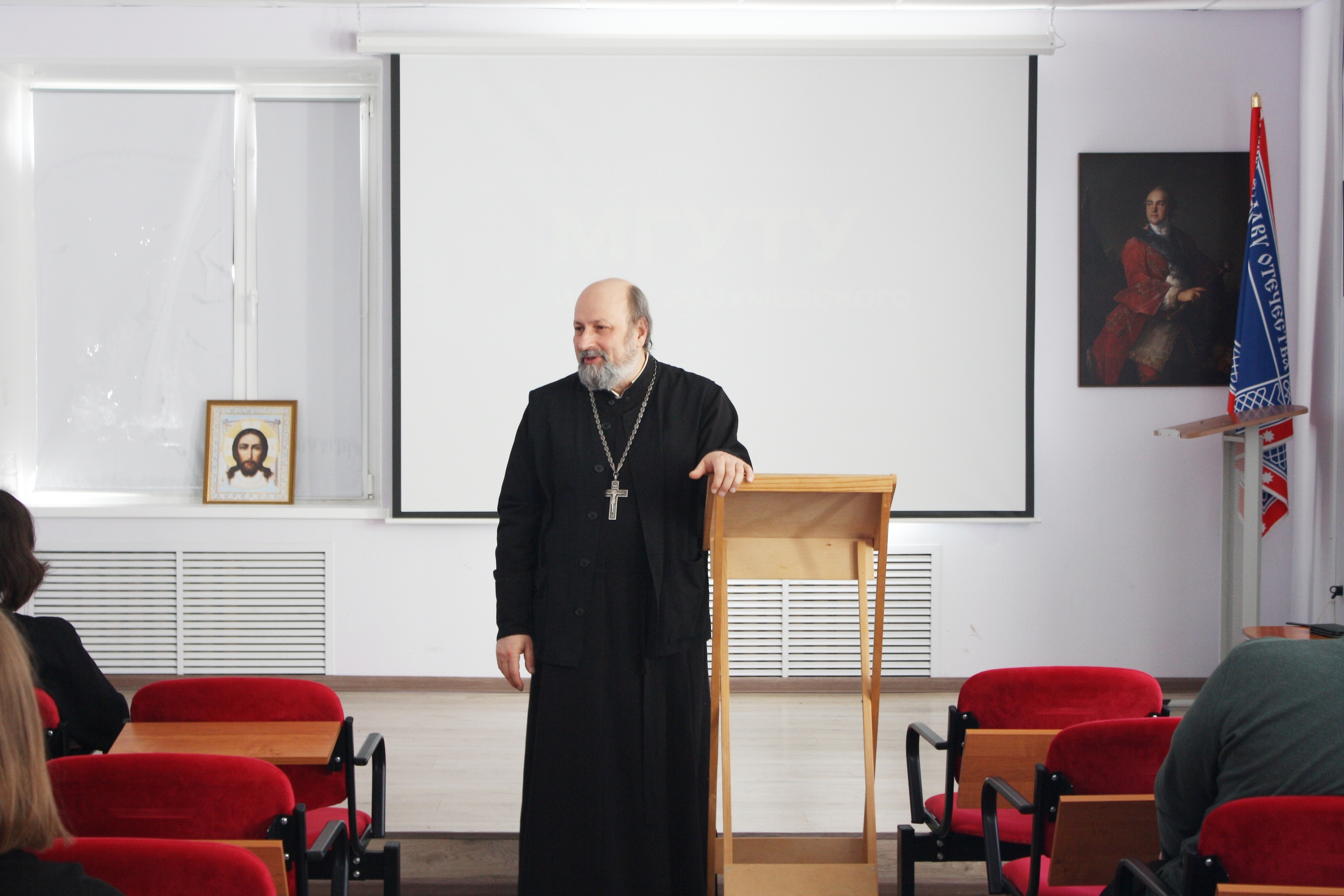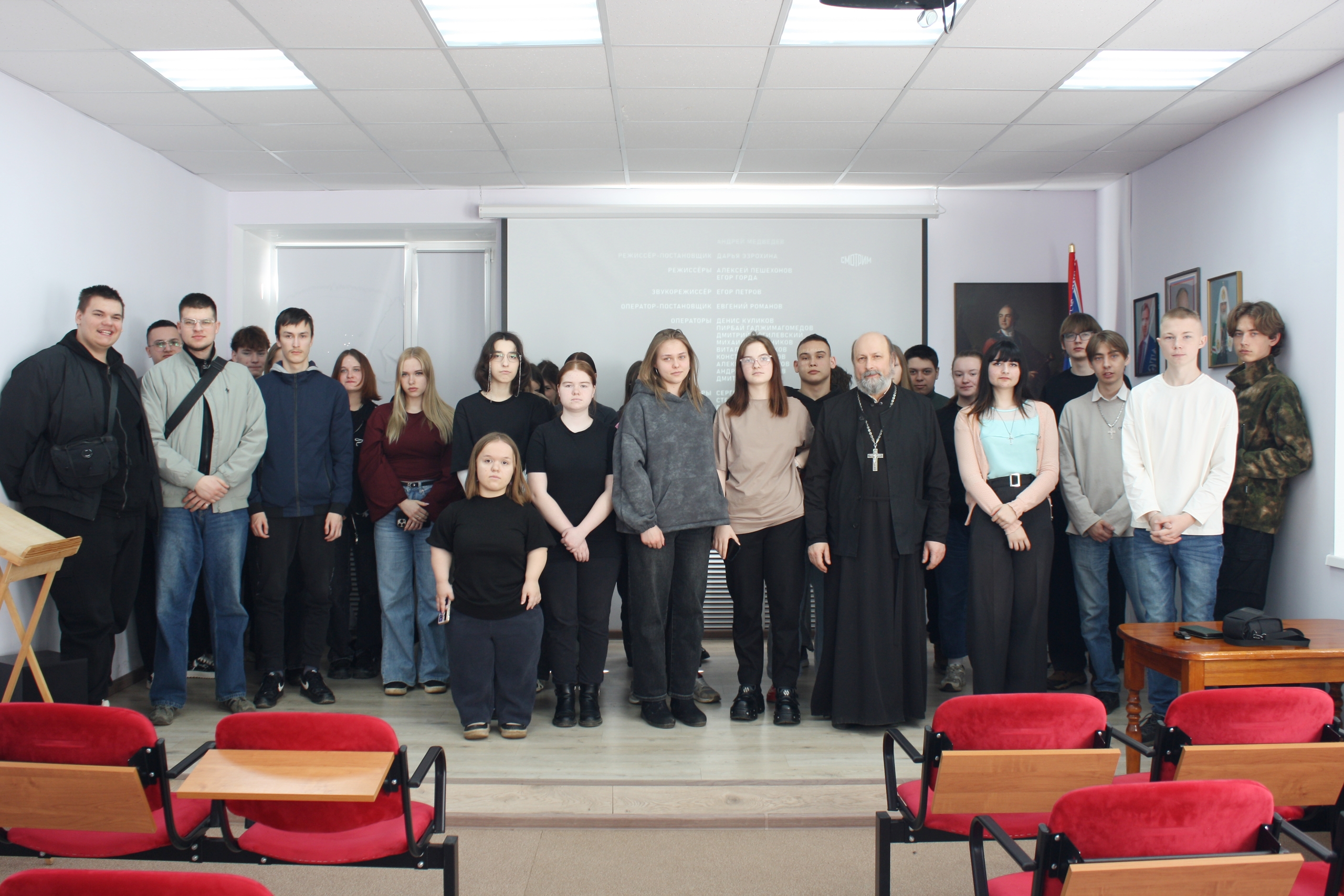 16 марта 2026 года в Смоленском казачьем институте промышленных технологий и бизнеса прошла встреча студентов с секретарём Вяземского епархиального управления, протоиереем Олегом Переверзевым.