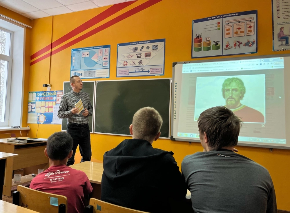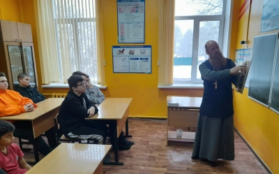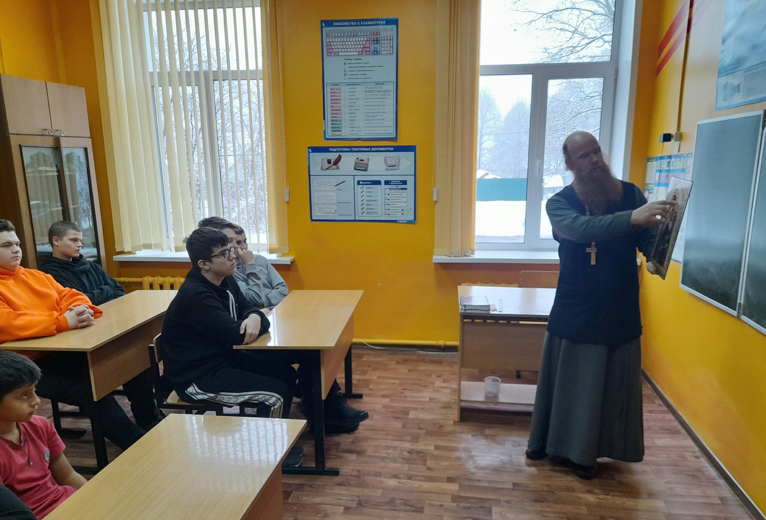 10 декабря 2025 года, благочинный Сафоновского округа, настоятель храма Рождества Христова иерей Сергий Чайкин и руководитель воскресной школы «Вифлеемская звезда» Михаил Зеленков провели урок в МБОУ «Николо-Погореловская СОШ».