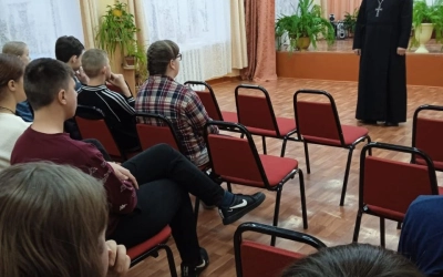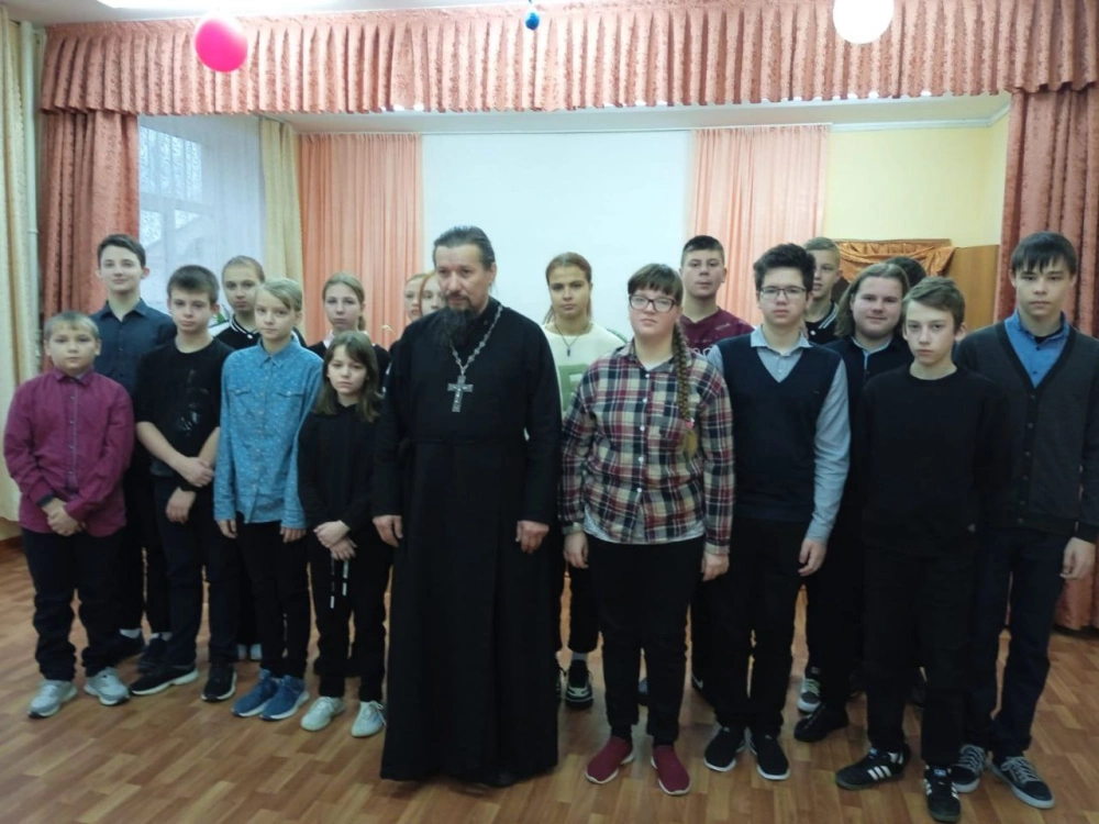 13 ноября 2024 года в рамках проведения муниципального этапа Рождественских образовательных чтений на тему «80-летие Великой Победы: память и духовный опыт поколений», состоялась встреча иерея Алексия Командирчика, настоятеля храма Преображения Господня в селе Липецы Новодугинского района, с учащимися Липецкой средней общеобразовательной школы имени Героя Советского Союза Евгения Петровича Тарасова.