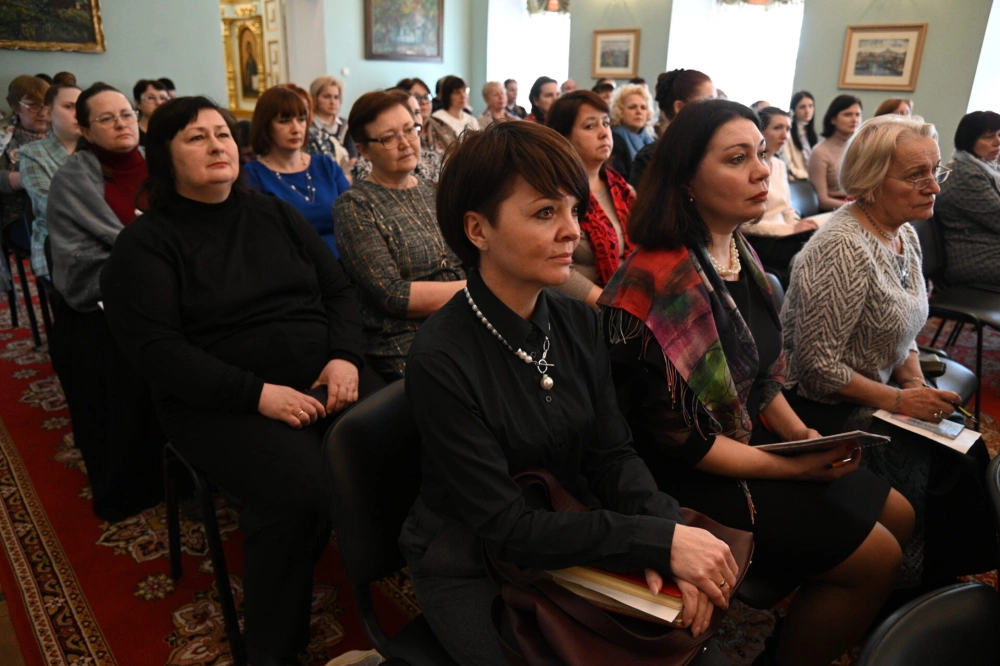 В зале собрались представители органов местного самоуправления, осуществляющие управление в сфере образования – муниципальные координаторы в области духовно-нравственного и патриотического воспитания, руководители районных методических объединений учителей, реализующие предметные области ОРКСЭ и ОДНКНР, участники конкурса, педагогические работники.