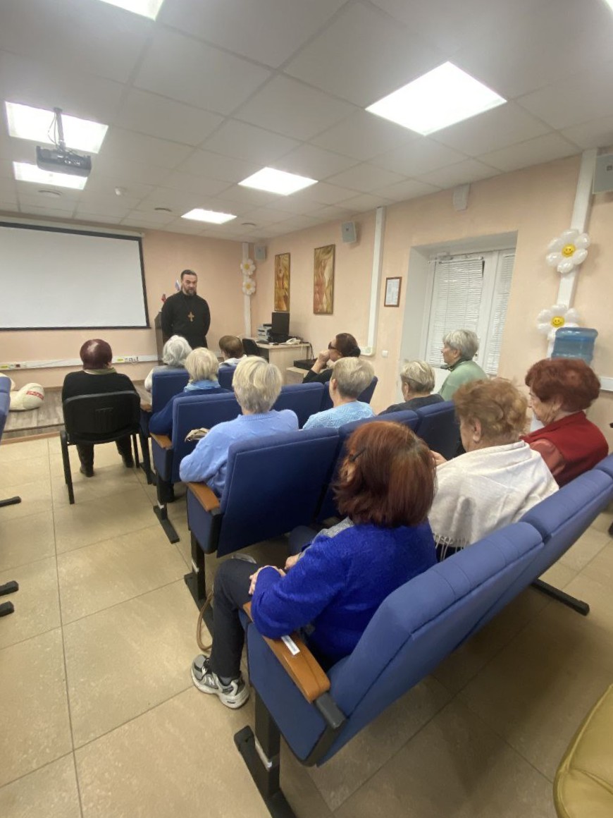 24 октября 2025 года активисты центра общения старшего поколения выражают благодарность за встречу с председателем комиссии по вопросам семьи, защиты материнства и детства Вяземской епархии иереем Димитрием Тимофеевым.