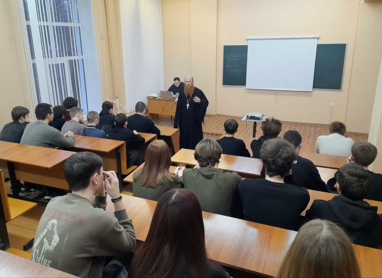 8 декабря 2025 года благочинный Сафоновского округа иерей Сергий Чайкин провел занятие «Разговоры о важном» для студентов СмолАПО.