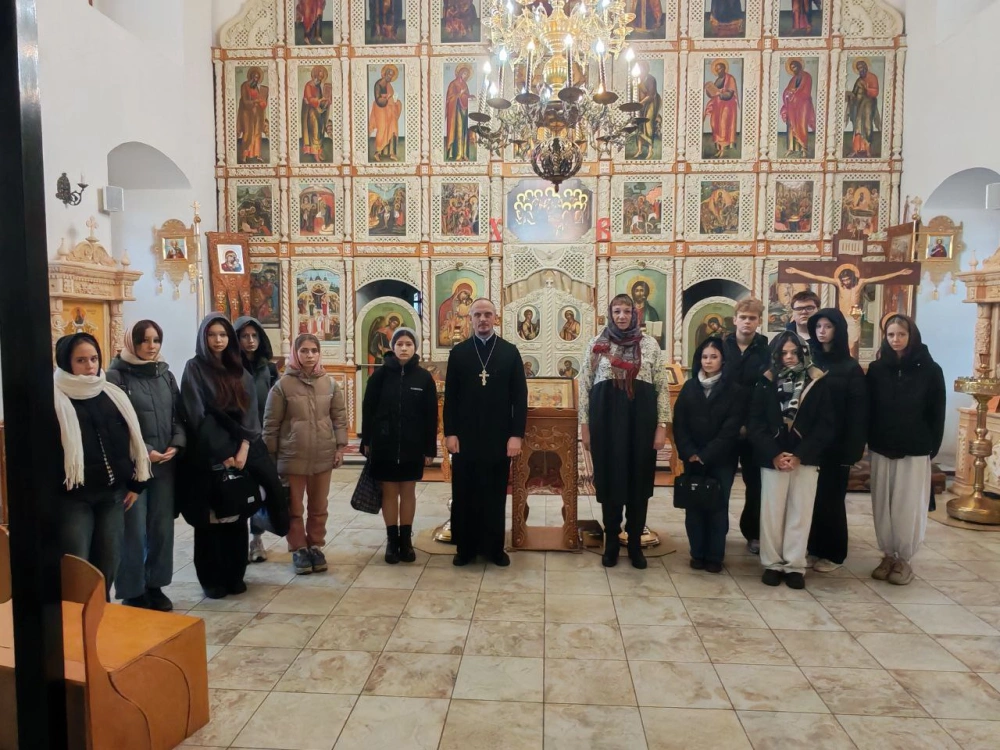 28 ноября 2025 года студенты медицинского колледжа г. Вязьмы посетили храм Преображения Господня. Экскурсию для студентов провёл клирик храма иерей Максим Артемьев.