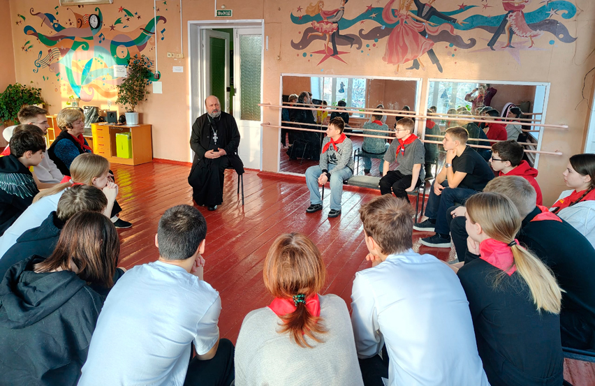 24 января 2026 года на базе Дома детского творчества протоиерей Олег Переверзев, руководитель епархиального ОРОиК, провёл встречу с ребятами из патриотической организации СООПО ДИМ «Наследники Победы». Тема беседы — духовное просвещение через культуру. Священник поделился со слушателями своим опытом постижения основ духовной жизни через знакомство с произведениями мировой культуры, а главное — через высокохудожественные образцы русской культуры.