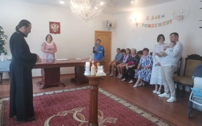 Клирик храма в честь Николая Чудотворца поселения городского типа Холм-Жирковский Отец Алексий благословил молодых родителей и поздравил их с рождением младенца, пожелал им крепкого здоровья и помощи Божией. Родные и близкие, присутствующие на регистрации, пожелали малышу расти здоровым и счастливым, а молодым родителям терпения и взаимной поддержки.