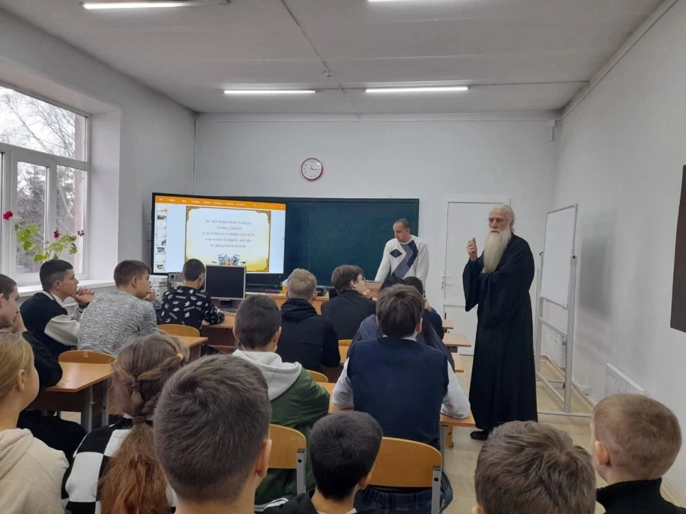 11 ноября 2024 года в рамках муниципального этапа Рождественских образовательных чтений состоялась встреча благочинного Сычевского округа митрофорного протоиерея Анатолия Чайкина с учащимися Караваевской основной школы и Юшинской основной школы, находящихся на территории Сычевского района.