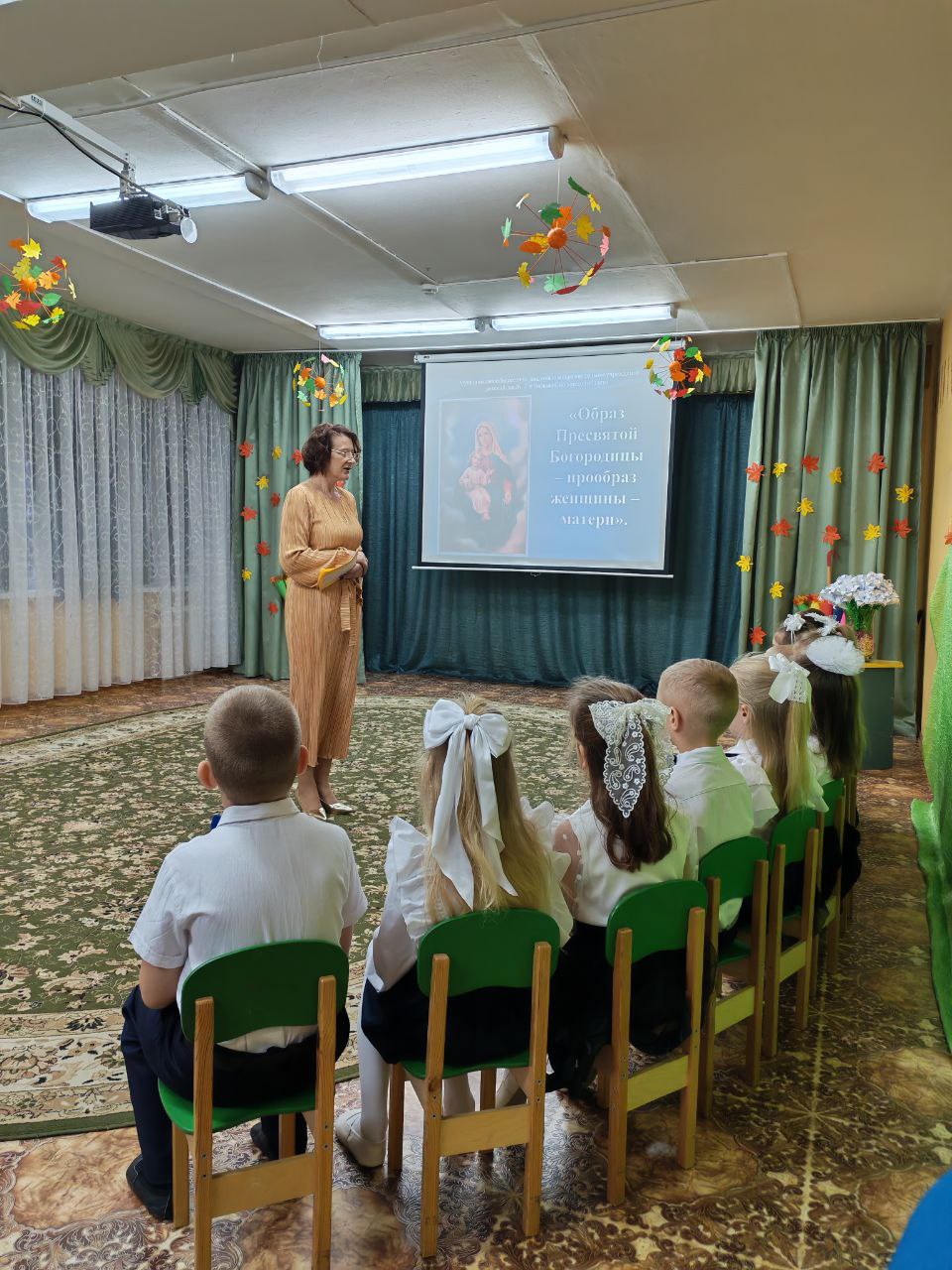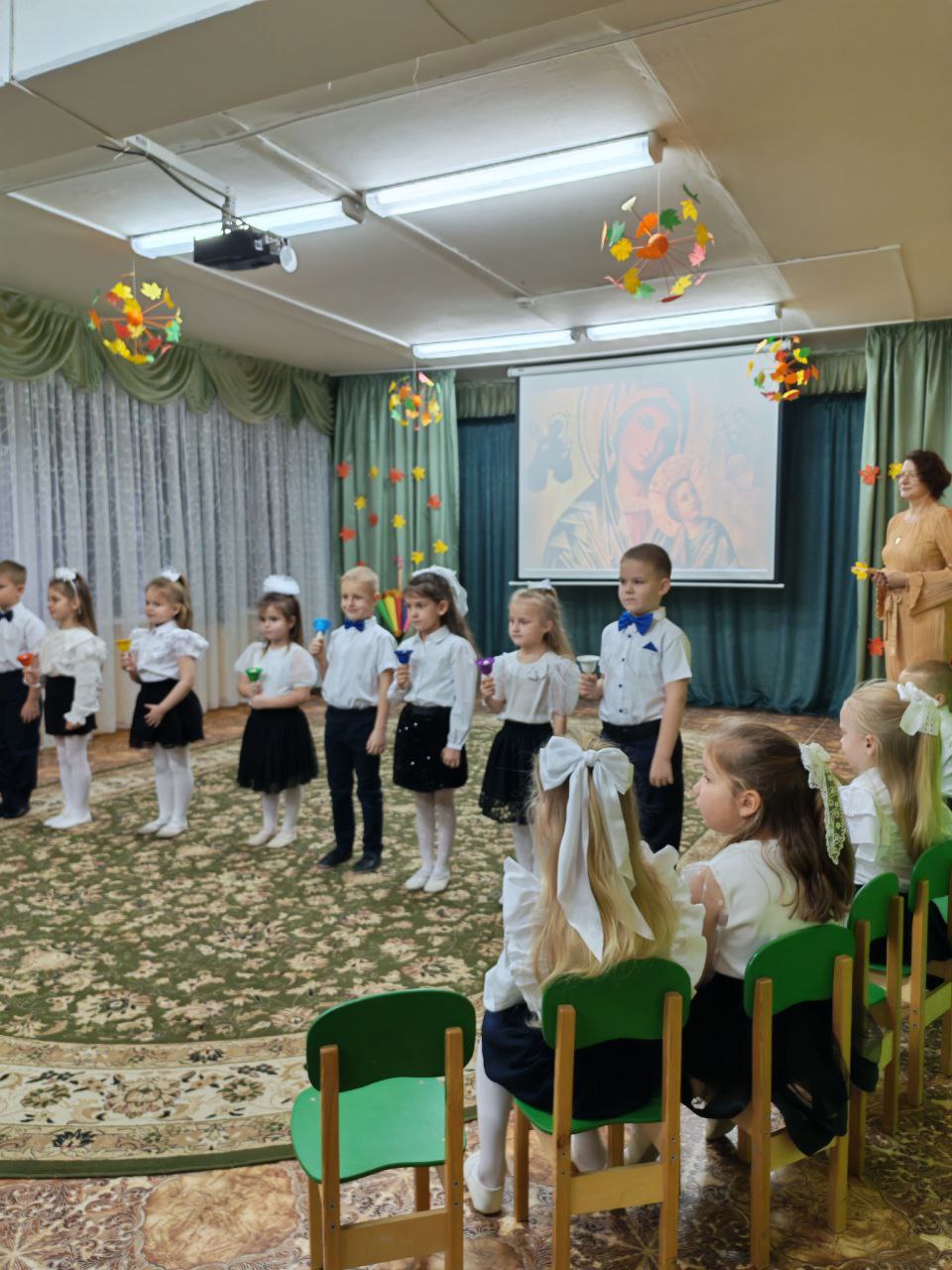 Детский коллектив «Весточка», под руководством педагога Марины Юрьевны Катаковой подготовили праздничную программу под названием: «Образ Пресвятой Богородицы-прообраз женщины-матери». Воспитанники детского сада рассказывали стихи и пели песни, посвящённые мамам, рассказывали пословицы, а затем вместе со своими мамами исполнили вальс. В завершении праздничного мероприятия дети подарили своим мамам белые лилии, изготовленные собственными руками.