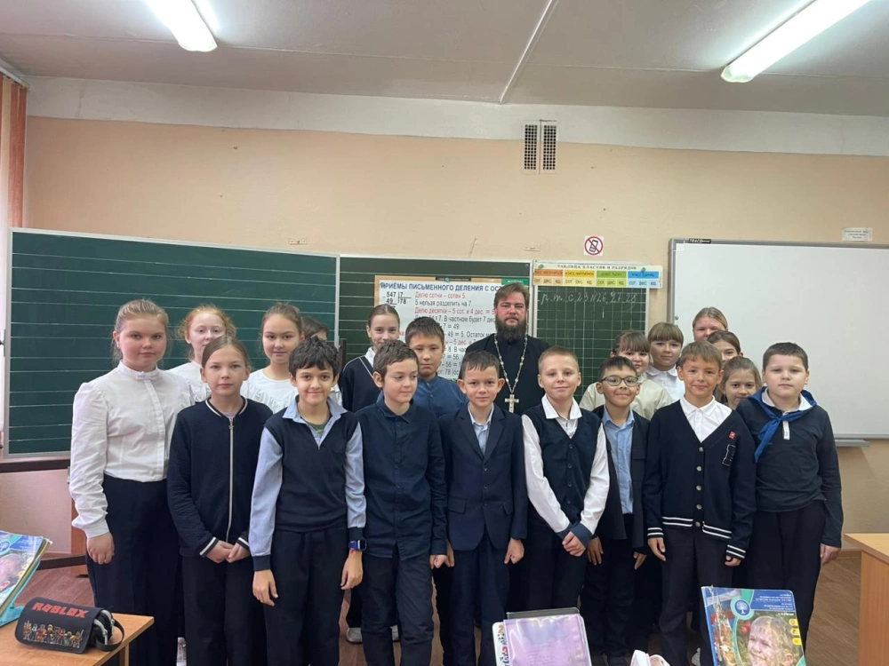 30 октября 2025 года, по благословению митрополита Смоленского и Дорогобужского Исидора, настоятель храма Казанской иконы Божией Матери иерей Сергий Романов принял участие в проведении занятия по ОПК у учащихся четвертых классов в МБОУ «Средняя школа № 4 имени А.А. Леонова» города Гагарина и рассказал о празднике Дне народного единства и о Казанской иконе Божией Матери.