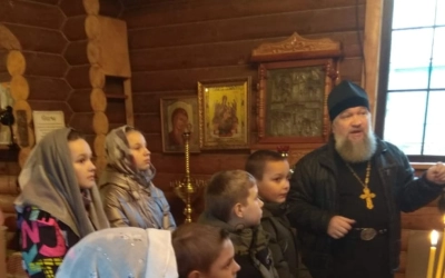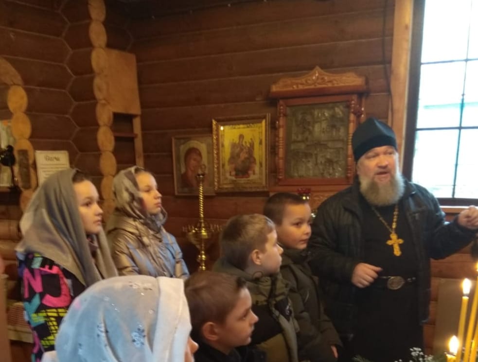 Настоятель, иеромонах Евфимий (Бакакин), рассказал детям о событиях, связанных с чтимым образом Пресвятой Богородицы, а также поговорил с ребятами о народном единстве. По окончании беседы батюшка ответил на вопросы ребят.