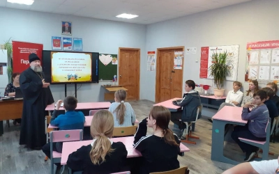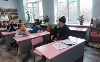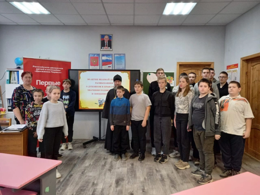 14 ноября 2024 года иеромонах Евфимий Бакакин провел урок истории в Знаменской школе, посвященный 80-летию Победы над фашизмом.