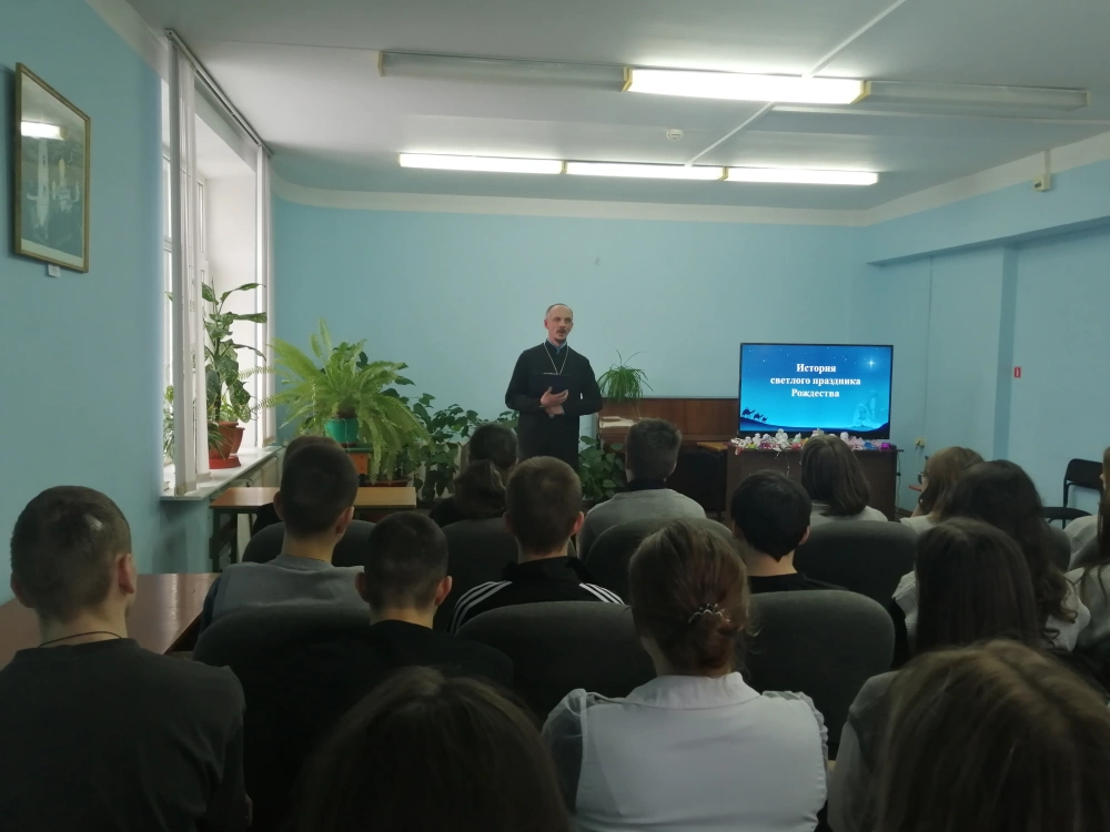 Священнослужитель рассказал о исторических событиях этих праздников, объяснив ребятам духовный и нравственный смысл событий двухтысячелетней давности, историческую особенность того времени, когда совершались эти евангельские события.