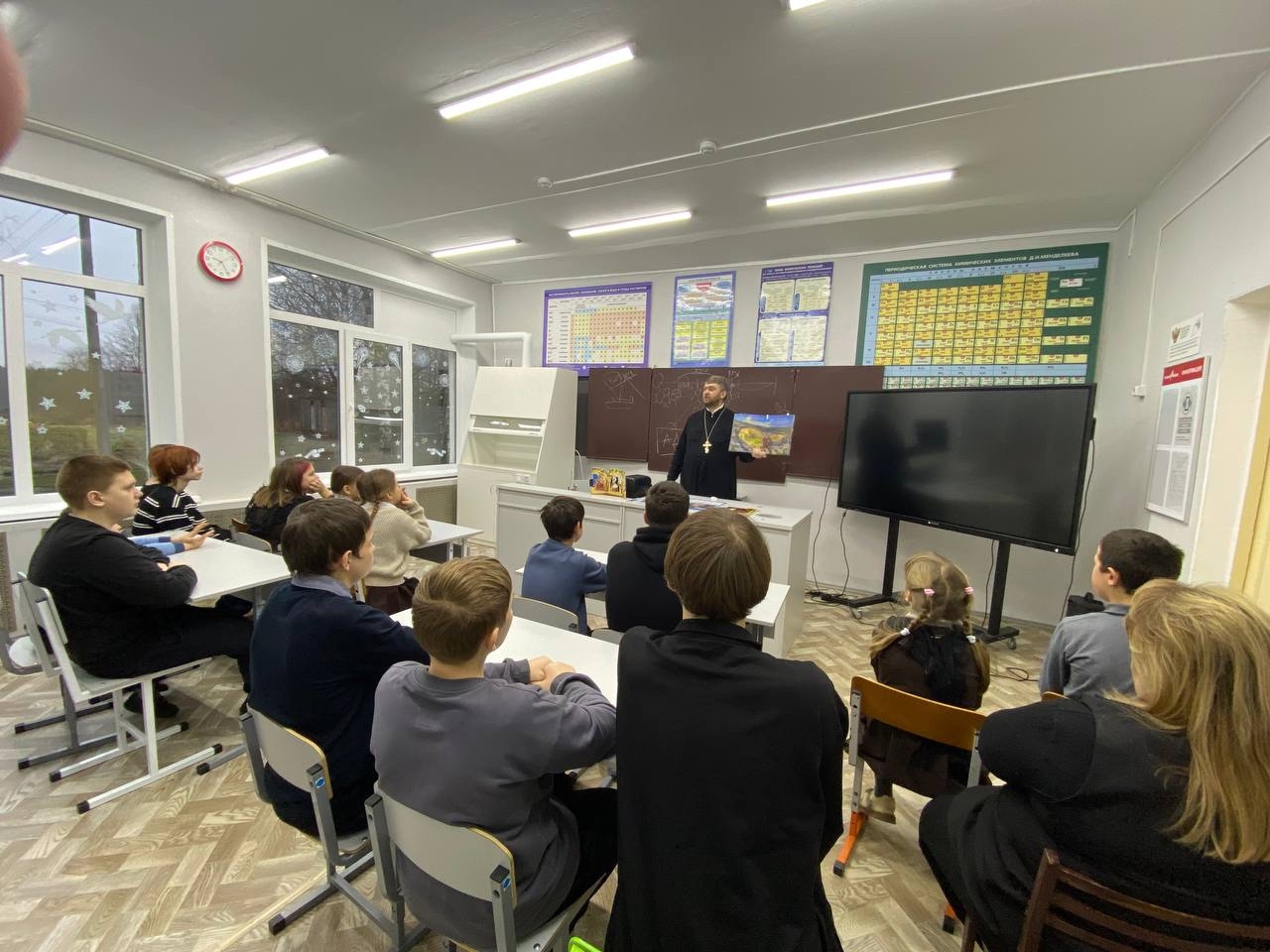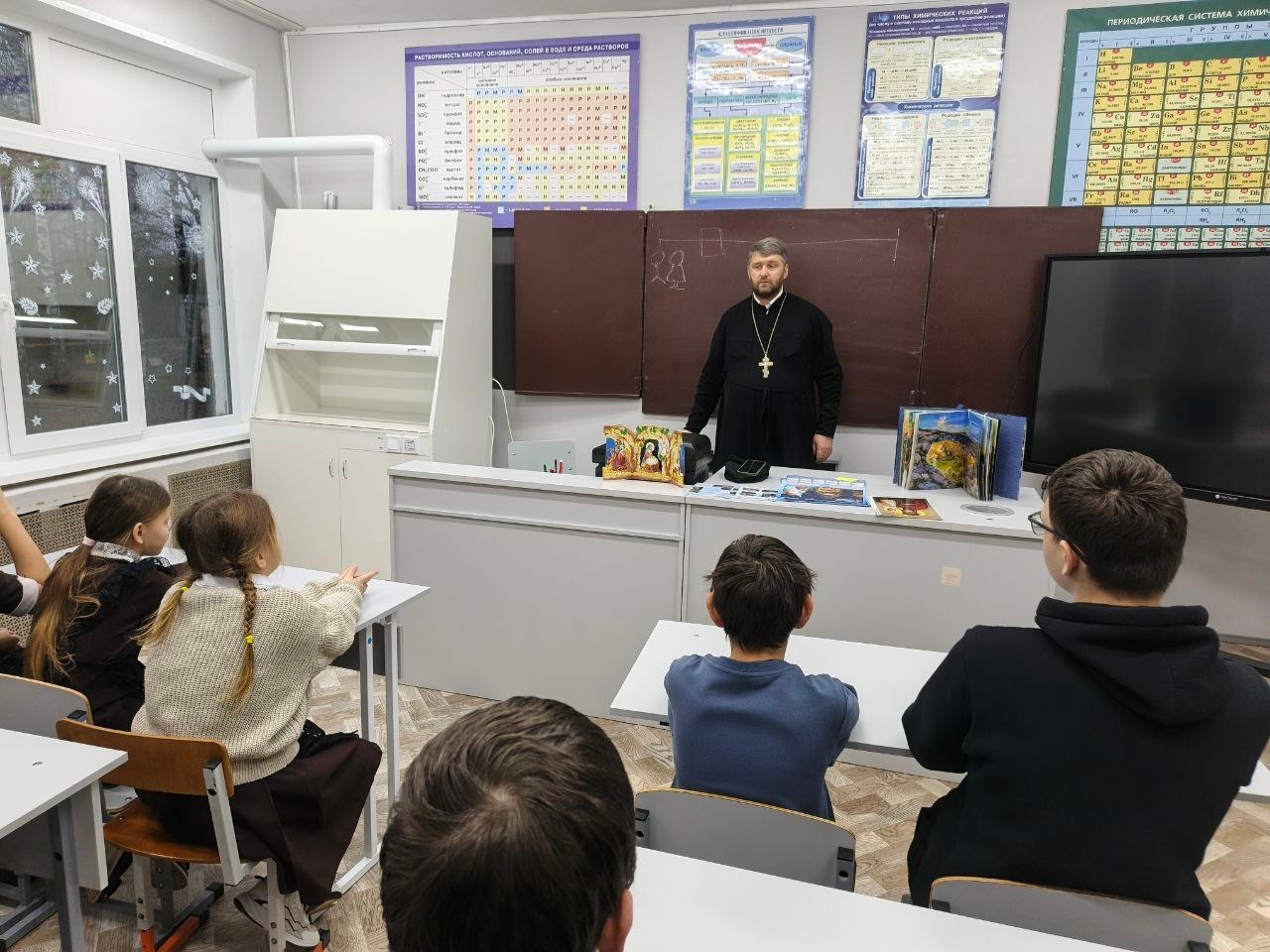 5 декабря 2025 года в рамках Рождественских чтений иерей Алексий Дубовский встретился с воспитанниками школ Сычевского округа.