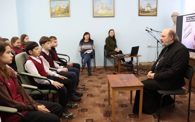 10 декабря 2025 года в Центральной районной библиотеке состоялась встреча священника с учащимися 8-го класса МБОУ СОШ №4 г. Вязьмы.