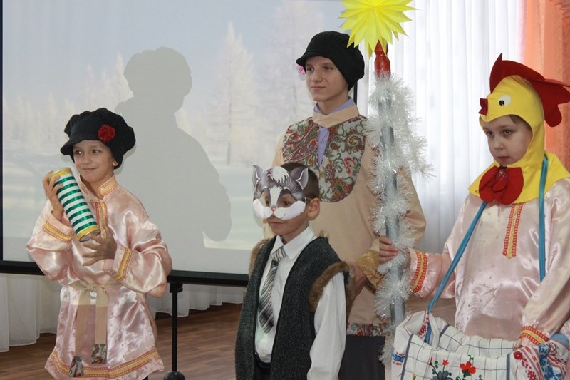Яркое впечатление на присутствующих произвело появление ряженых с колядками и подарками. После чего началось настоящее волшебство творчества: гости, родители и дети отправились на мастер - классы.