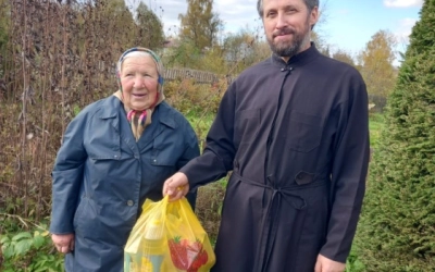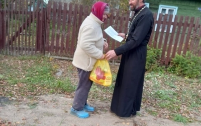 Настоятелем Прихода храма в честь Святых Равноапостольных Кирилла и Мефодия с. Угра протоиереем Валентином Зиньковым с помощниками социального служения Прихода наборы были доставлены до нуждающихся.