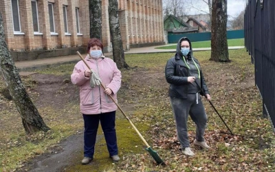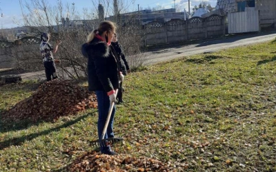 Они приняли непосредственное участие в субботнике по уборке территории вокруг центра (убрали листву), а так же внутри него.