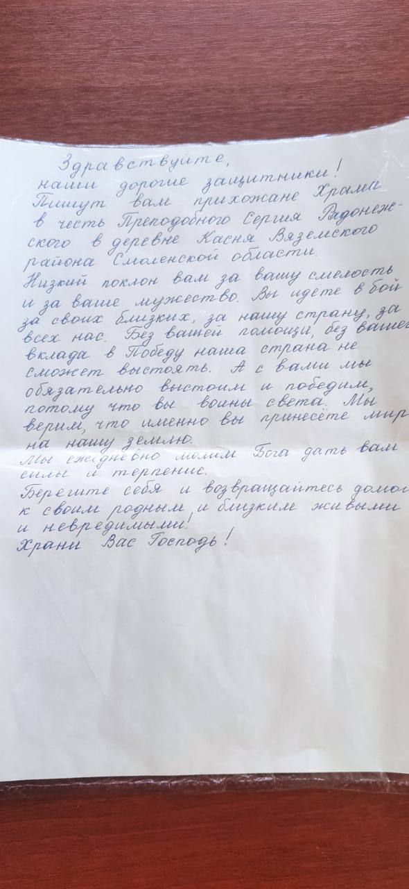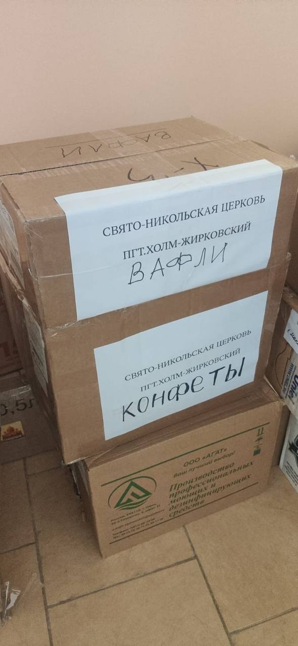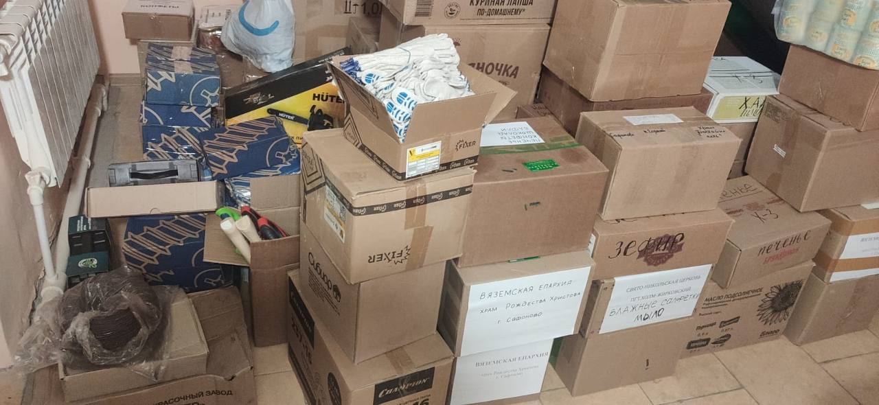 Перед отправкой груза был отслужен молебен благочинным Вяземского городского округа протоиереем Валерием Калининым.