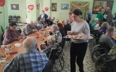 По благословению благочинного Вяземского городского округа протоиерея Валерия Калинина помощники по социальному служению организовали поздравление подопечных Вяземского дома-интерната для престарелых и инвалидов. Им были переданы угощения к праздничному чаепитию. В Социальной пекарне Вяземской епархии специально для дома-интерната выпекли ароматный ржаной хлеб.