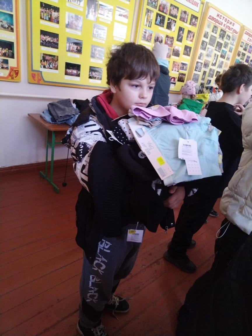 Также, как и в других районах, которые посещает гуманитарный Центр, содействие в формировании списков и оповещении благополучателей оказывал Отдел социальной защиты населения. Всего вещевая помощь была оказана 25 семьям, в которых воспитывается 92 ребёнка. Девчонки выбирали себе украшения, красивые, тёплые кофточки, удобные джинсы, а мальчишки смогли выбрать шапки, куртки и джемперы.