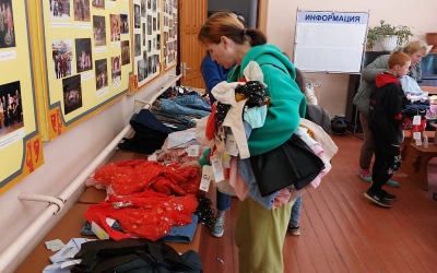 Многодетные семьи и семьи с детьми, находящиеся в трудной жизненной ситуации были приглашены для бесплатной раздачи им новой, сезонной одежды фирмы Глория Джинс. Всего вещевая помощь была оказана 20 семьям, в которых воспитывается 74 ребенка. В этот приезд гуманитарного Центра дети и родители смогли подготовиться к летнему теплу: выбирали лёгкие шорты, нарядные футболки, яркие кепки. К одежде прилагались солнечные очки и купальники на любой вкус!